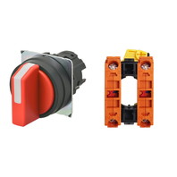 セレクタスイッチ(φ22), 非照光, 3ノッチ, 樹脂ベゼル, 右に自動復帰, 操作部色: 赤(不透明), IP66, ねじ端子台, 接点構成: NC/-/NC