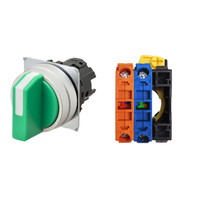 セレクタスイッチ(φ22), 非照光, 3ノッチ, 金属ベゼル, 左右に自動復帰, 操作部色: 緑(不透明), IP66, ねじ端子台, 接点構成: -/NO/NC