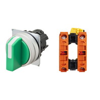 セレクタスイッチ(φ22), 非照光, 3ノッチ, 金属ベゼル, 左右に自動復帰, 操作部色: 緑(不透明), IP66, ねじ端子台, 接点構成: NC/-/NC