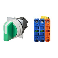 セレクタスイッチ(φ22), 非照光, 3ノッチ, 金属ベゼル, 左右に自動復帰, 操作部色: 緑(不透明), IP66, ねじ端子台, 接点構成: NC/NO/NO