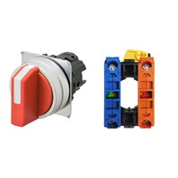 セレクタスイッチ(φ22), 非照光, 3ノッチ, 金属ベゼル, 左右に自動復帰, 操作部色: 赤(不透明), IP66, ねじ端子台, 接点構成: NC/-/NO