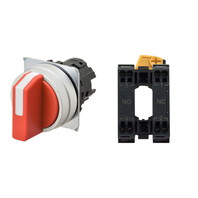 セレクタスイッチ(φ22), 非照光, 3ノッチ, 金属ベゼル, 左右に自動復帰, 操作部色: 赤(不透明), IP66, プッシュインPlus端子台, 接点構成: NC/-/NO