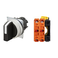 セレクタスイッチ(φ22), 非照光, 3ノッチ, 金属ベゼル, 左に自動復帰, 操作部色: 黒(不透明), IP66, ねじ端子台, 接点構成: -/NC/NC