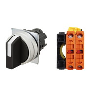セレクタスイッチ(φ22), 非照光, 3ノッチ, 金属ベゼル, 左に自動復帰, 操作部色: 黒(不透明), IP66, ねじ端子台, 接点構成: NC/NC/-