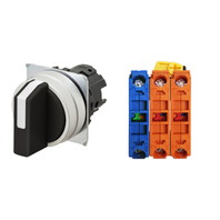 セレクタスイッチ(φ22), 非照光, 3ノッチ, 金属ベゼル, 左に自動復帰, 操作部色: 黒(不透明), IP66, ねじ端子台, 接点構成: NC/NC/NO