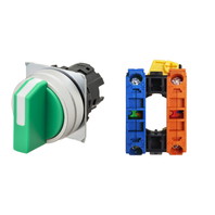 セレクタスイッチ(φ22), 非照光, 3ノッチ, 金属ベゼル, 左に自動復帰, 操作部色: 緑(不透明), IP66, ねじ端子台, 接点構成: NC/-/NO
