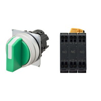 セレクタスイッチ(φ22), 非照光, 3ノッチ, 金属ベゼル, 左に自動復帰, 操作部色: 緑(不透明), IP66, プッシュインPlus端子台, 接点構成: NO/NC/NO