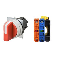 セレクタスイッチ(φ22), 非照光, 3ノッチ, 金属ベゼル, 左に自動復帰, 操作部色: 赤(不透明), IP66, ねじ端子台, 接点構成: -/NO/NC