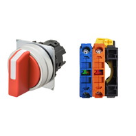 セレクタスイッチ(φ22), 非照光, 3ノッチ, 金属ベゼル, 左に自動復帰, 操作部色: 赤(不透明), IP66, ねじ端子台, 接点構成: -/NC/NO