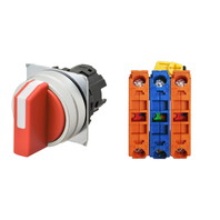 セレクタスイッチ(φ22), 非照光, 3ノッチ, 金属ベゼル, 左に自動復帰, 操作部色: 赤(不透明), IP66, ねじ端子台, 接点構成: NC/NO/NC