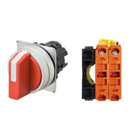 セレクタスイッチ(φ22), 非照光, 3ノッチ, 金属ベゼル, 左に自動復帰, 操作部色: 赤(不透明), IP66, ねじ端子台, 接点構成: NC/NC/-