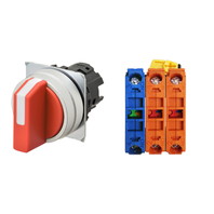 セレクタスイッチ(φ22), 非照光, 3ノッチ, 金属ベゼル, 左に自動復帰, 操作部色: 赤(不透明), IP66, ねじ端子台, 接点構成: NC/NC/NO