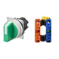 セレクタスイッチ(φ22), 非照光, 3ノッチ, 金属ベゼル, 手動復帰, 操作部色: 緑(不透明), IP66, ねじ端子台, 接点構成: NO/-/NC