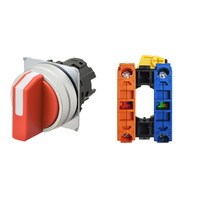 セレクタスイッチ(φ22), 非照光, 3ノッチ, 金属ベゼル, 手動復帰, 操作部色: 赤(不透明), IP66, ねじ端子台, 接点構成: NO/-/NC