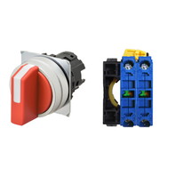 セレクタスイッチ(φ22), 非照光, 3ノッチ, 金属ベゼル, 手動復帰, 操作部色: 赤(不透明), IP66, ねじ端子台, 接点構成: NO/NO/-