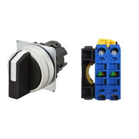 セレクタスイッチ(φ22), 非照光, 3ノッチ, 金属ベゼル, 右に自動復帰, 操作部色: 黒(不透明), IP66, ねじ端子台, 接点構成: NO/NO/-