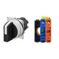 セレクタスイッチ(φ22), 非照光, 3ノッチ, 金属ベゼル, 右に自動復帰, 操作部色: 黒(不透明), IP66, ねじ端子台, 接点構成: NC/NO/-