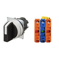 セレクタスイッチ(φ22), 非照光, 3ノッチ, 金属ベゼル, 右に自動復帰, 操作部色: 黒(不透明), IP66, ねじ端子台, 接点構成: NC/NO/NC