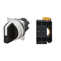 セレクタスイッチ(φ22), 非照光, 3ノッチ, 金属ベゼル, 右に自動復帰, 操作部色: 黒(不透明), IP66, プッシュインPlus端子台, 接点構成: -/NO/NC