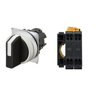 セレクタスイッチ(φ22), 非照光, 3ノッチ, 金属ベゼル, 右に自動復帰, 操作部色: 黒(不透明), IP66, プッシュインPlus端子台, 接点構成: NO/NC/-