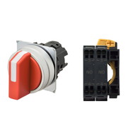セレクタスイッチ(φ22), 非照光, 3ノッチ, 金属ベゼル, 右に自動復帰, 操作部色: 赤(不透明), IP66, プッシュインPlus端子台, 接点構成: -/NO/NO