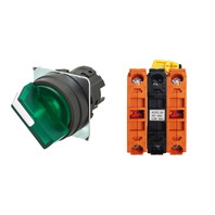 セレクタスイッチ(φ22), 照光, 2ノッチ, 樹脂ベゼル, 左に自動復帰, 操作部色: 緑(透明), IP66, ねじ端子台, 接点構成: NC/点灯ユニット/NC, LEDランプ色: 緑, LEDランプ電圧: AC/DC6V