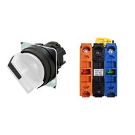 セレクタスイッチ(φ22), 照光, 2ノッチ, 樹脂ベゼル, 左に自動復帰, 操作部色: 白(透明), IP66, ねじ端子台, 接点構成: NO/点灯ユニット/NC, LEDランプ色: 白, LEDランプ電圧: AC/DC12V