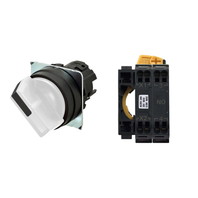 セレクタスイッチ(φ22), 照光, 2ノッチ, 樹脂ベゼル, 左に自動復帰, 操作部色: 白(透明), IP66, プッシュインPlus端子台, 接点構成: NO/点灯ユニット/-, LEDランプ色: 白, LEDランプ電圧: AC200/220/230/240V