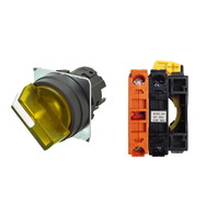 セレクタスイッチ(φ22), 照光, 2ノッチ, 樹脂ベゼル, 左に自動復帰, 操作部色: 黄(透明), IP66, ねじ端子台, 接点構成: -/点灯ユニット/NC, LEDランプ色: 黄, LEDランプ電圧: AC/DC12V