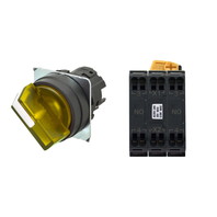 セレクタスイッチ(φ22), 照光, 2ノッチ, 樹脂ベゼル, 左に自動復帰, 操作部色: 黄(透明), IP66, プッシュインPlus端子台, 接点構成: NO/点灯ユニット/NO, LEDランプ色: 黄, LEDランプ電圧: AC/DC12V