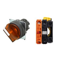 セレクタスイッチ(φ22), 照光, 2ノッチ, 樹脂ベゼル, 手動復帰, 操作部色: 橙(透明), IP66, ねじ端子台, 接点構成: -/点灯ユニット/NC, LEDランプ色: 橙, LEDランプ電圧: AC/DC6V