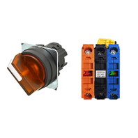 セレクタスイッチ(φ22), 照光, 2ノッチ, 樹脂ベゼル, 手動復帰, 操作部色: 橙(透明), IP66, ねじ端子台, 接点構成: NO/点灯ユニット/NC, LEDランプ色: 橙, LEDランプ電圧: AC/DC12V