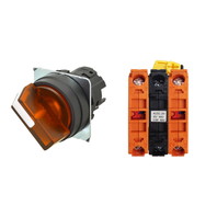 セレクタスイッチ(φ22), 照光, 2ノッチ, 樹脂ベゼル, 手動復帰, 操作部色: 橙(透明), IP66, ねじ端子台, 接点構成: NC/点灯ユニット/NC, LEDランプ色: 橙, LEDランプ電圧: AC/DC12V