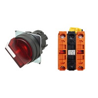 セレクタスイッチ(φ22), 照光, 2ノッチ, 樹脂ベゼル, 手動復帰, 操作部色: 赤(透明), IP66, ねじ端子台, 接点構成: NC/点灯ユニット/NC, LEDランプ色: 赤, LEDランプ電圧: AC/DC12V
