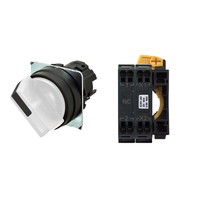 セレクタスイッチ(φ22), 照光, 2ノッチ, 樹脂ベゼル, 手動復帰, 操作部色: 白(透明), IP66, プッシュインPlus端子台, 接点構成: -/点灯ユニット/NC, LEDランプ色: 白, LEDランプ電圧: AC100/110/120V
