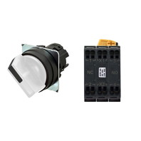 セレクタスイッチ(φ22), 照光, 2ノッチ, 樹脂ベゼル, 手動復帰, 操作部色: 白(透明), IP66, プッシュインPlus端子台, 接点構成: NO/点灯ユニット/NC, LEDランプ色: 黄, LEDランプ電圧: AC/DC6V