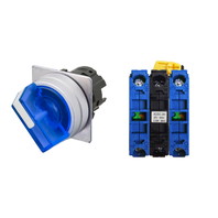 セレクタスイッチ(φ22), 照光, 2ノッチ, 金属ベゼル, 左に自動復帰, 操作部色: 青(透明), IP66, ねじ端子台, 接点構成: NO/点灯ユニット/NO, LEDランプ色: 青, LEDランプ電圧: AC/DC12V