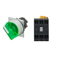 セレクタスイッチ(φ22), 照光, 2ノッチ, 金属ベゼル, 左に自動復帰, 操作部色: 緑(透明), IP66, プッシュインPlus端子台, 接点構成: NO/点灯ユニット/NC, LEDランプ色: 緑, LEDランプ電圧: AC200/220/230/240V