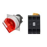セレクタスイッチ(φ22), 照光, 2ノッチ, 金属ベゼル, 左に自動復帰, 操作部色: 赤(透明), IP66, プッシュインPlus端子台, 接点構成: NO/点灯ユニット/NO, LEDランプ色: 赤, LEDランプ電圧: AC200/220/230/240V