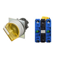 セレクタスイッチ(φ22), 照光, 2ノッチ, 金属ベゼル, 左に自動復帰, 操作部色: 黄(透明), IP66, ねじ端子台, 接点構成: NO/点灯ユニット/NO, LEDランプ色: 黄, LEDランプ電圧: AC100/110/120V