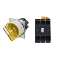 セレクタスイッチ(φ22), 照光, 2ノッチ, 金属ベゼル, 左に自動復帰, 操作部色: 黄(透明), IP66, プッシュインPlus端子台, 接点構成: NC/点灯ユニット/NC, LEDランプ色: 黄, LEDランプ電圧: AC100/110/120V