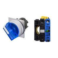 セレクタスイッチ(φ22), 照光, 2ノッチ, 金属ベゼル, 手動復帰, 操作部色: 青(透明), IP66, ねじ端子台, 接点構成: NO/点灯ユニット/-, LEDランプ色: 青, LEDランプ電圧: AC100/110/120V