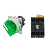 セレクタスイッチ(φ22), 照光, 2ノッチ, 金属ベゼル, 手動復帰, 操作部色: 緑(透明), IP66, プッシュインPlus端子台, 接点構成: NO/点灯ユニット/NO, LEDランプ色: 緑, LEDランプ電圧: AC/DC6V
