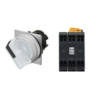 セレクタスイッチ(φ22), 照光, 2ノッチ, 金属ベゼル, 手動復帰, 操作部色: 白(透明), IP66, プッシュインPlus端子台, 接点構成: NO/点灯ユニット/NO, LEDランプ色: 黄, LEDランプ電圧: AC/DC12V
