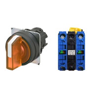 セレクタスイッチ(φ22), 照光, 3ノッチ, 樹脂ベゼル, 左右に自動復帰, 操作部色: 橙(透明), IP66, ねじ端子台, 接点構成: NO/点灯ユニット/NO, LEDランプ色: 橙, LEDランプ電圧: AC/DC6V