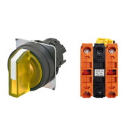 セレクタスイッチ(φ22), 照光, 3ノッチ, 樹脂ベゼル, 左右に自動復帰, 操作部色: 黄(透明), IP66, ねじ端子台, 接点構成: NC/点灯ユニット/NC, LEDランプ色: 黄, LEDランプ電圧: AC/DC24V