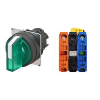 セレクタスイッチ(φ22), 照光, 3ノッチ, 樹脂ベゼル, 左に自動復帰, 操作部色: 緑(透明), IP66, ねじ端子台, 接点構成: NO/点灯ユニット/NC, LEDランプ色: 緑, LEDランプ電圧: AC200/220/230/240V