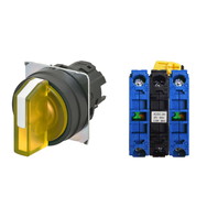 セレクタスイッチ(φ22), 照光, 3ノッチ, 樹脂ベゼル, 左に自動復帰, 操作部色: 黄(透明), IP66, ねじ端子台, 接点構成: NO/点灯ユニット/NO, LEDランプ色: 黄, LEDランプ電圧: AC/DC12V