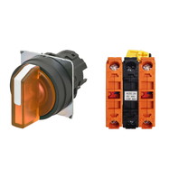 セレクタスイッチ(φ22), 照光, 3ノッチ, 樹脂ベゼル, 右に自動復帰, 操作部色: 橙(透明), IP66, ねじ端子台, 接点構成: NC/点灯ユニット/NC, LEDランプ色: 橙, LEDランプ電圧: AC/DC12V