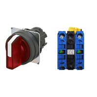 セレクタスイッチ(φ22), 照光, 3ノッチ, 樹脂ベゼル, 右に自動復帰, 操作部色: 赤(透明), IP66, ねじ端子台, 接点構成: NO/点灯ユニット/NO, LEDランプ色: 赤, LEDランプ電圧: AC/DC6V